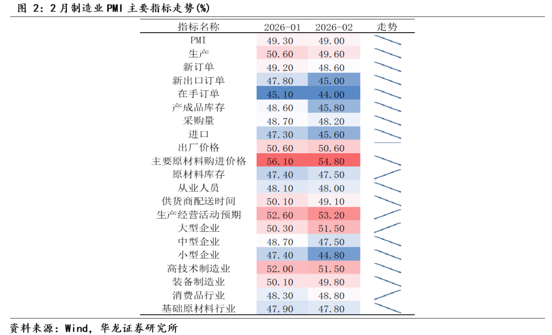 (2)2月制造业PMI有所回落